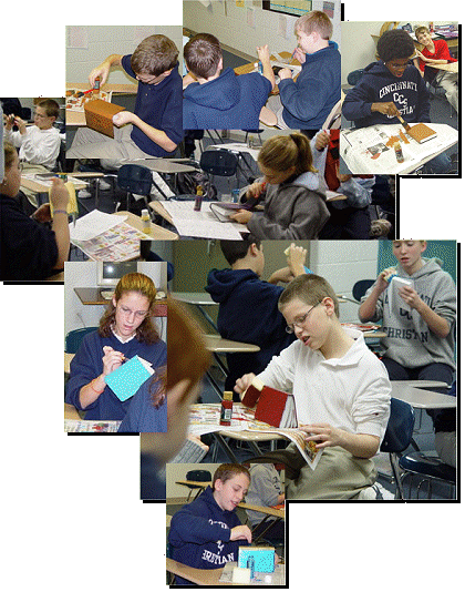 Painting the covers of the journals.